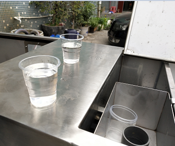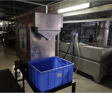 9.設備運行過程中,漆渣自動刮走,并掉落在接渣桶中,清水逐漸變清回用到原來的清池中進行回用。大約用時1.5小時,水就能變清。企業可以根據自身的情況設定多長時間進行處理自己的污水,漆渣能減輕原來處理廢渣的95%,為處理漆渣大大節約成本,和水資源。