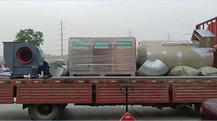廣東久藍環(huán)保于2022年4月21日早上發(fā)貨voc廢氣治理設備,該套設備包括:PP噴淋塔,使用PP材質制作,處理25000風量,電機功率2.4KW;活性炭吸附箱25000風量,制作材質不銹鋼201,三門六抽屜,活性炭吸附箱尺寸為:1.8mm*530mm*900mm,采用蜂窩式活性炭,800碘值,離心風機加風管,該套voc廢氣治理設備用于廢氣處理工程,印刷廠的酸性廢氣處理,廣東久藍環(huán)??萍加邢薰臼且患疑avoc廢氣治理設備,承接廢氣處理工程的環(huán)保公司,歡迎咨詢了解。